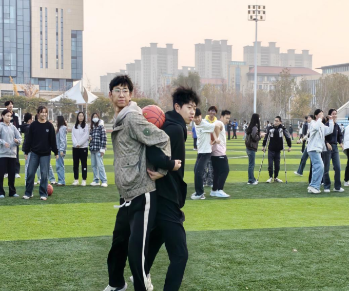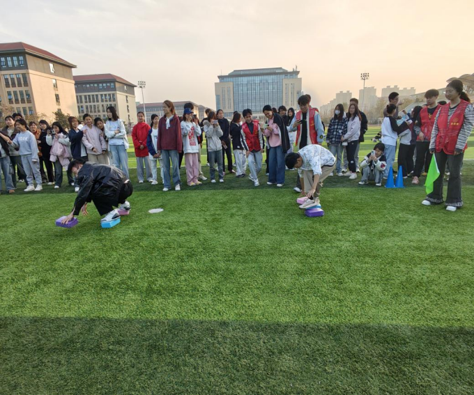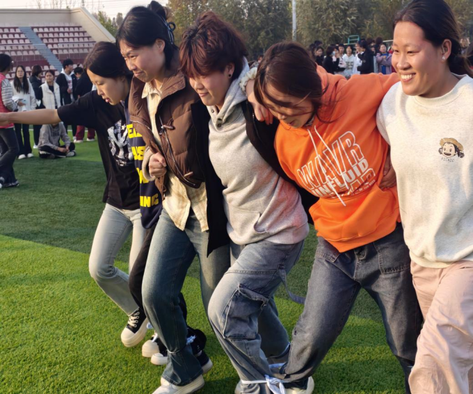当操场上的欢笑声还萦绕在耳边,六人七足活动已然登场,队员们以手示意,彼此搀扶,依靠默契的眼神与统一的步伐奋力向前。他们步调一致的身影,与偶尔调整节奏时的小小趔趄,共同构成了操场上一道动人的风景线。