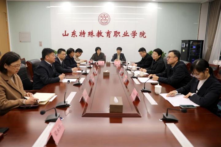 10月17日下午,南京特殊教育师范学院副校长许巧仙、高飞一行4人来学院调研中高等特殊教育职业教育办学情况,学院党委书记杨磊热情接待,副院长丁华参加活动。